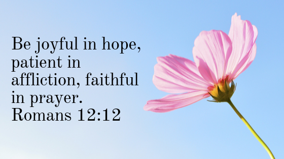 I’ve thought about that advice several times since then and chuckled to myself this morning when God gave me a list of next things to do. Be joyful in hope. Be patient in affliction. Be faithful in prayer.