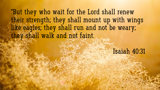 I’m encouraged by the words in Isaiah 40:31. But they who wait for the Lord shall renew their strength; they shall mount up with wings like eagles; they shall run and not be weary; they shall walk and not faint.